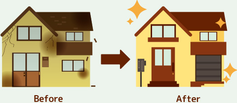 「リフォーム」は「回復・修復」という意味合いが強く含まれています。 一般的に、建物の価値が「マイナスからゼロ」へ戻るように部分的に改修したり設備を入れ替えたりする工事が「リフォーム」です。