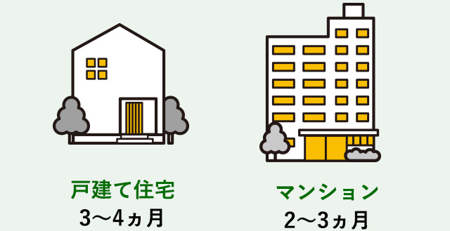 リノベーションの工事期間は、マンションであれば2〜3ヵ月程度、戸建て住宅であれば3〜4ヵ月程度となることが多いです。打ち合わせや設計に必要な期間を含めると、施工会社に依頼してから完成まで半年程度を見込んでおくとよいでしょう。