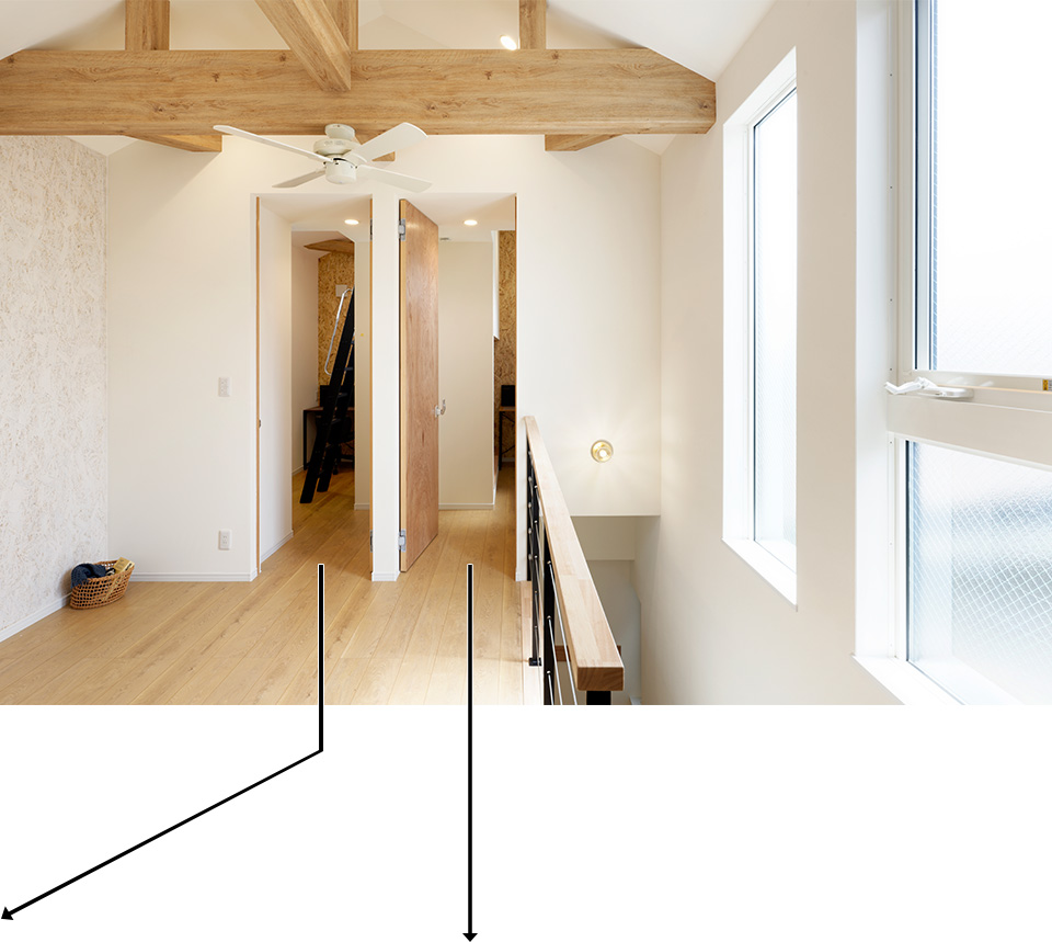 3階のフリールームからそれぞれの子供部屋へつながっています。