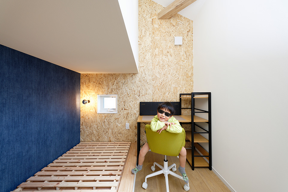 子供部屋の壁は断熱性・気密性・防虫性にすぐれたOSBボード。