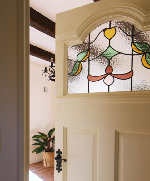 ステンドグラスはお客様と一緒に京都へ買い付けにいき選びました。