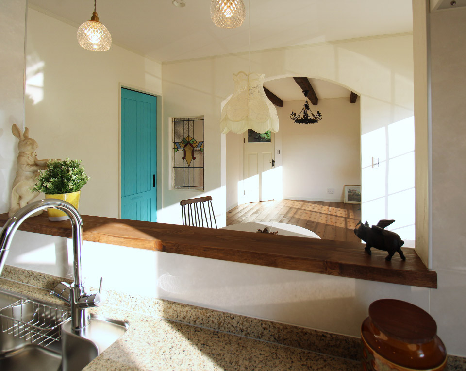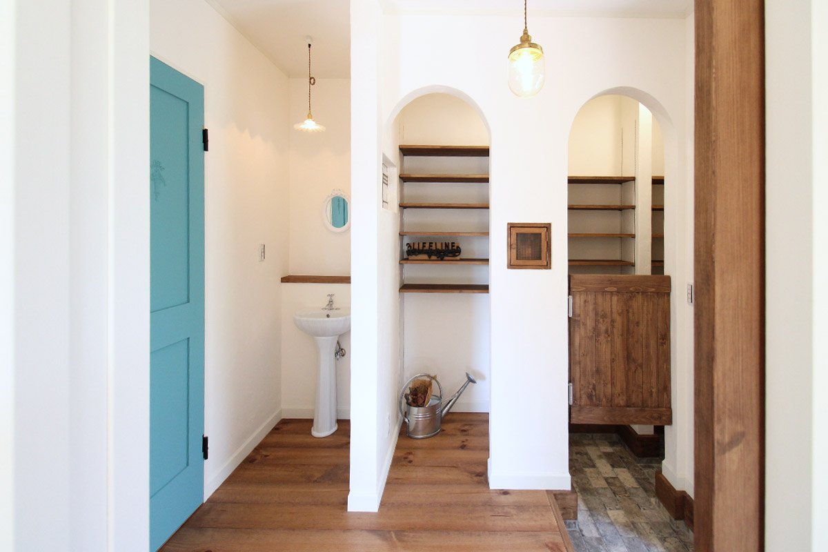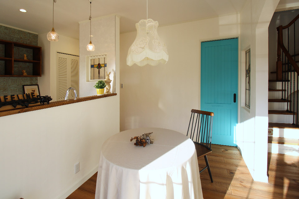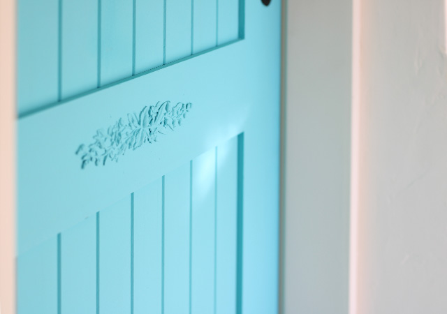 扉は無垢材を奥様のすきなティファニーカラーで塗装