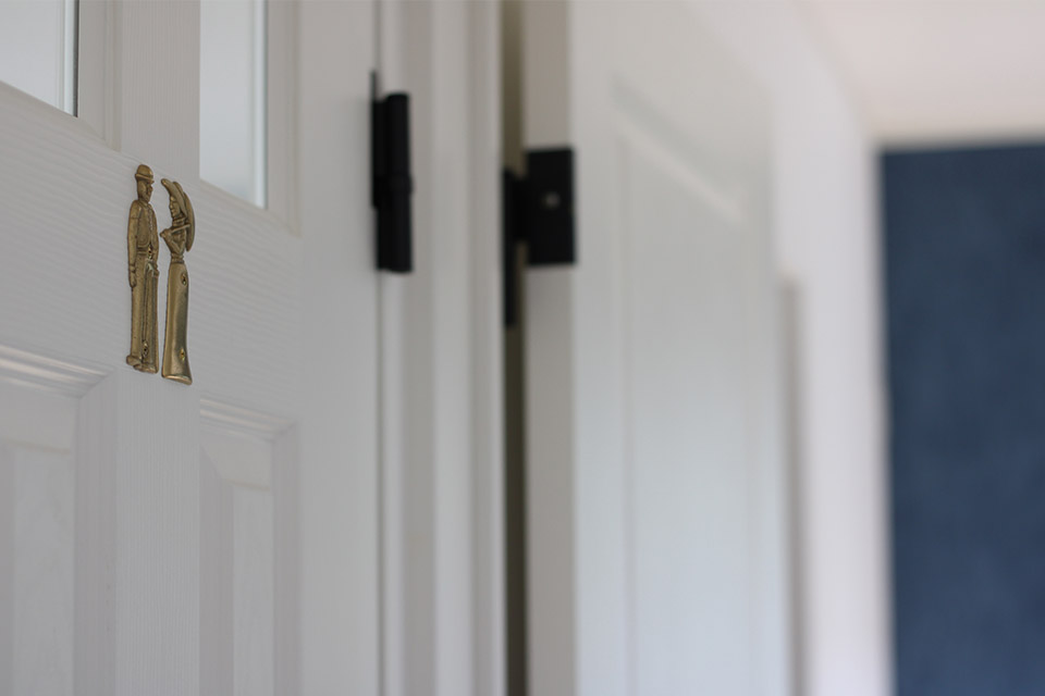 引戸ドアの飾りはフランスアンティークの鈴蘭飾りを型取りして、レジンで作成し、塗装いたしました。
